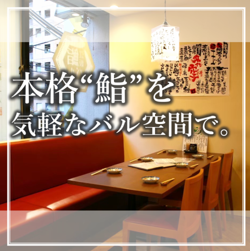 本格江戸前鮨を気軽なバル空間で!ゆったり過ごせるテーブルを多数ご用意しております。