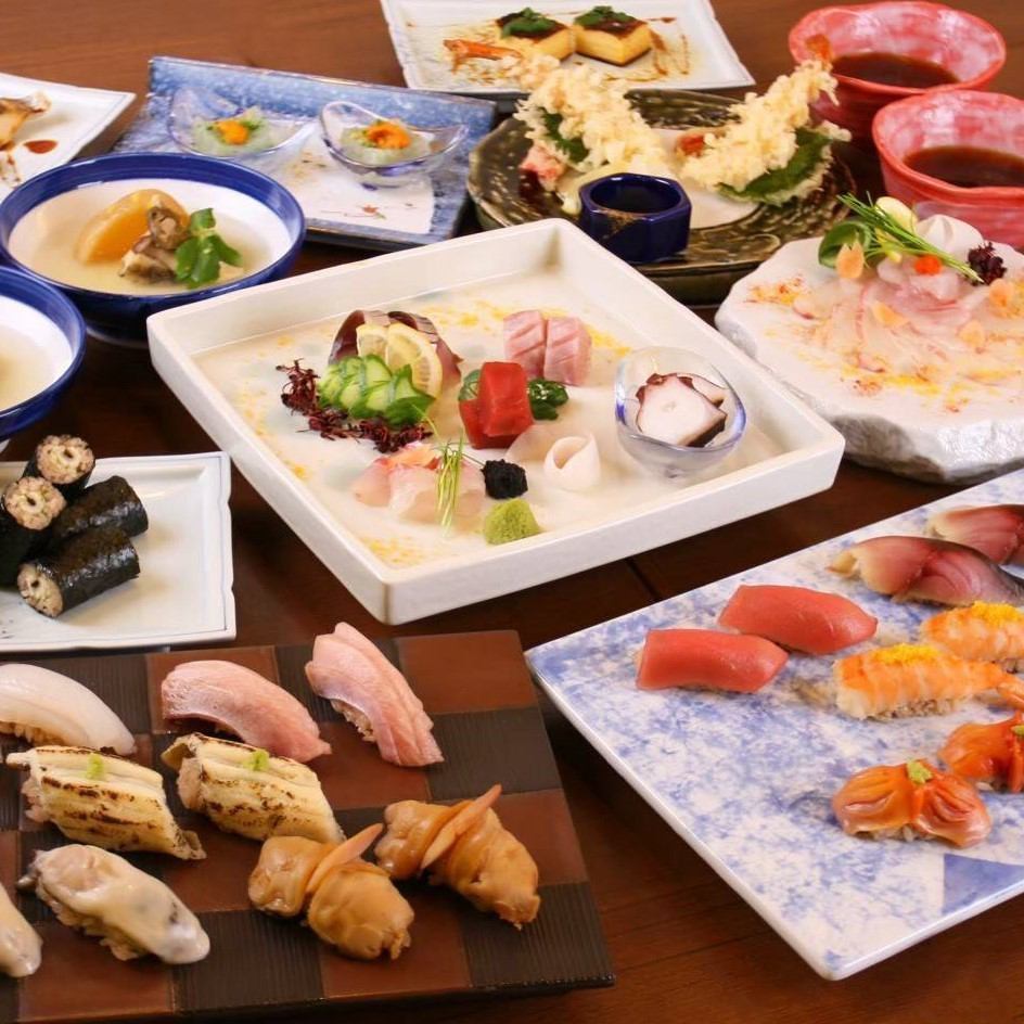 我們的餐廳以從全國各地採購的新鮮魚類為榮。我們用精心挑選的時令食材製成的引以為傲的生魚片來歡迎您的到來。您還可以品嚐到從明石和九州精心挑選的特產“Takobutsu”(章魚)。我們還提供您喜歡的配料作為單獨物品,因此請與我們引以為豪的日本酒一起享用。